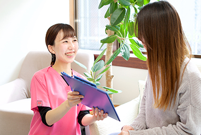 ご記入いただいた診療申込書の内容に沿って、くわしくお話をうかがいます。治療に対するご希望、現在の生活習慣などについてもお聞きします。