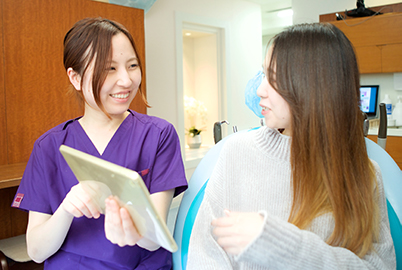 精密検査の結果を基に、患者様にとって最適な予防プログラム、治療・修復プログラム、メインテナンスプログラムについてご提案し、その内容をわかりやすく丁寧にご説明します。気になっていることや疑問点があれば、何でもご質問ください。